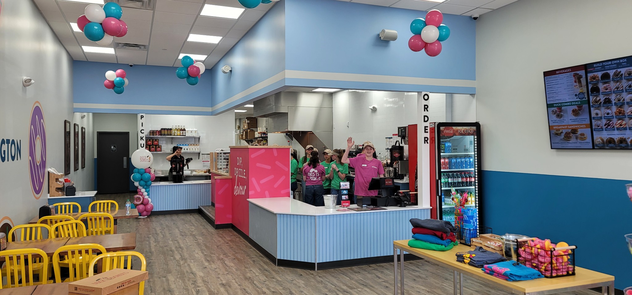 Conversion of a vacant ground floor retail tenant space into a new Franchise location for Duck Donuts. The work included a new commercial kitchen, exhaust hood from the ground floor up to the roof, new electrical service into the building and utilities, FOH pastry cabinets, POS, coffee bar, high and low seating. We worked with the owner and Corporate Design Team to find over $15k in alternates and substitute savings during the course of the project. The project was completed in 10 weeks and was within 7% of our initial budget.